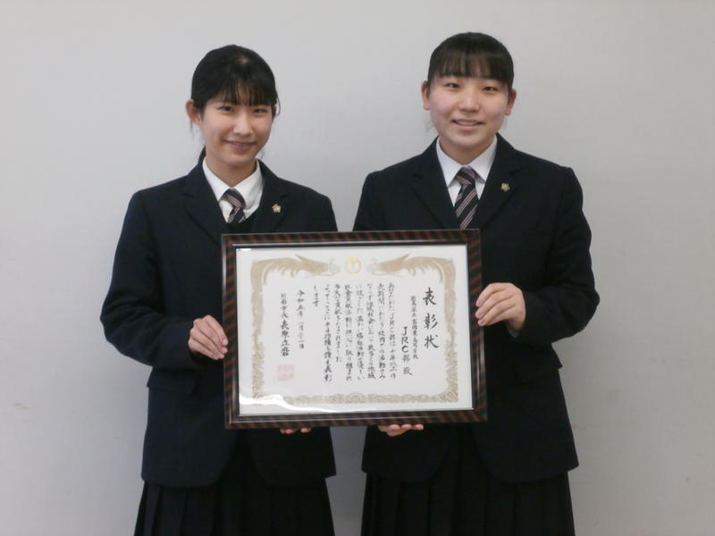 本校のJRC部の取り組みが認められ、第55回阿南市社会福祉大会(R5.1.21)で阿南市長から表彰していただきました。