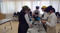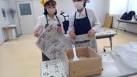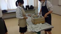 インターネットでどのように食器を作るか調べて試作した後、手際よく新聞をおり、ラップしていきました。できた新聞紙食器への配膳も役割分担して、効率よくできました。