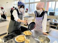寒い1月の放課後、気の合う仲間と一緒に、熱々のもんじゃ焼きをほおばりました。お腹の空いた放課後に熱々のもんじゃ焼きはたまりません。調理室には、いい匂いと笑顔と笑い声も加わり、体も心もほかほかになりました。