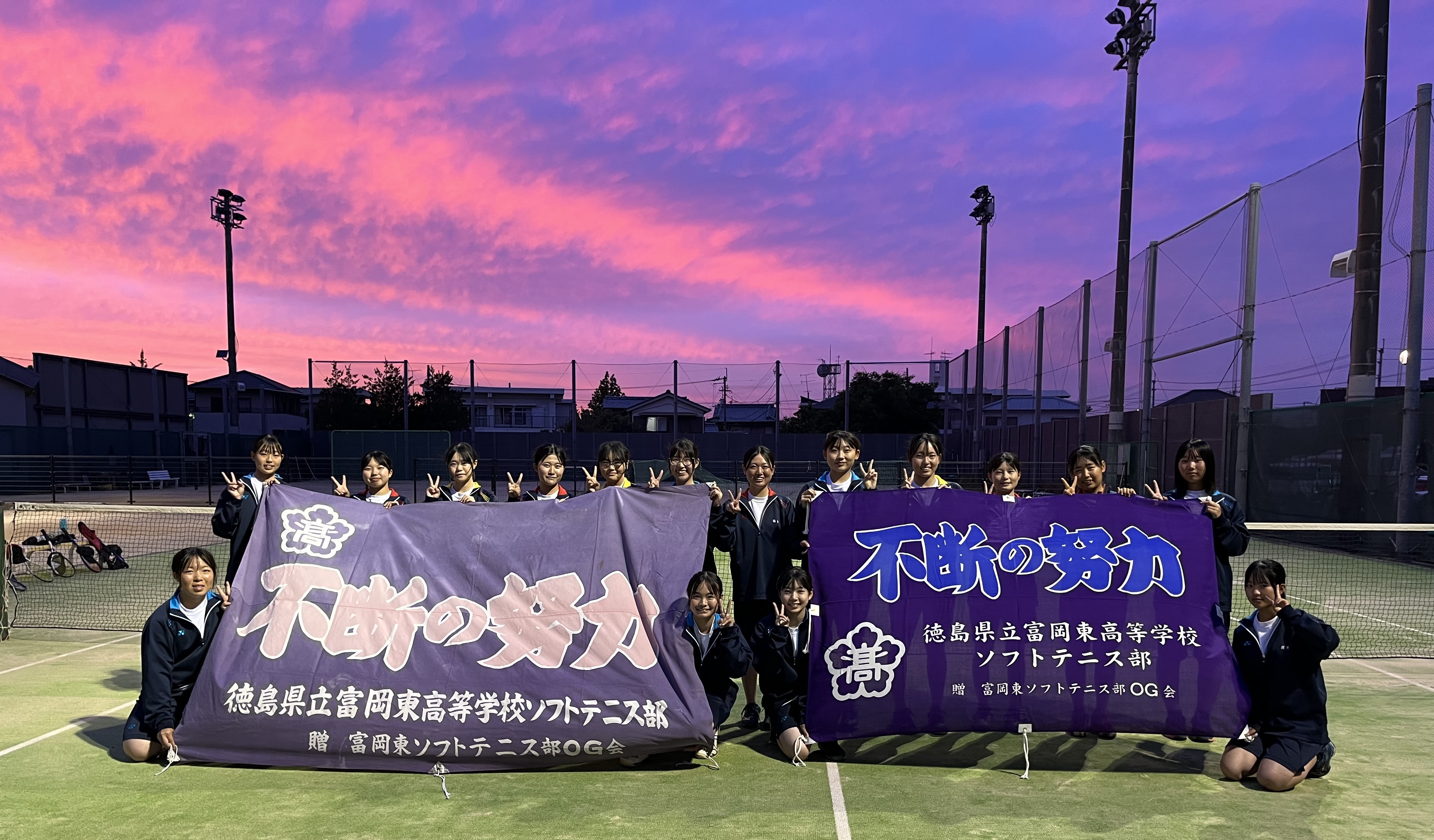 この度寄贈していただいた、富岡東高校を象徴する紫の鮮やかな新部旗もまた、女子ソフトテニス部のOGの方々からの温かいご寄贈によるものです。