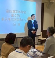 今回は、特別企画として、『富東の今!』と題して、校長先生と生徒さんが本校校舎のあちこちを紹介する動画を上映し、題名通り、普段はみることができない『富東の今!』を伺い知ることができました。最後は、恒例の校歌斉唱と記念撮影を行い、一本締めでお開きとなりました