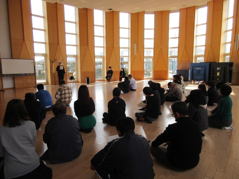 令和5年3月9日(木)午後2時から、多目的ホールで、阿南警察署生活安全課から講師3名を招いて「不審者侵入時の緊急対応に関する教職員研修」を実施しました。