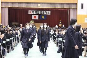 令和5年3月1日,卒業証書授与式が挙行されました。全日制商業科35名,普通科145名,定時制普通科5名,合計185名が,御来賓,保護者の皆様,中・高の教職員に見守られながら巣立っていきました。