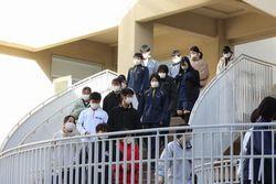 校舎内で火災が発生したとの想定で行い,避難しました。全校生徒800名が落ち