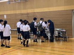 部活動見学は希望者のみでした。高校でも継続したい部や中学校にはない部を見学し,本校生徒の活動の様子を見てくれました。30分という短い時間でしたが,部員からの説明や実際の活動など,中学生に学習も部活動も頑張る富東生をアピールできたと思います。