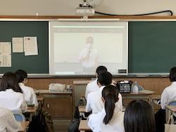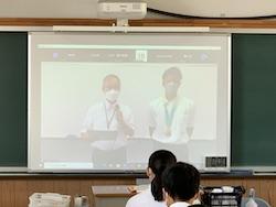 オリエンテーションはZoomで行いました。糸木校長先生のお話の後,生徒会による学校紹介をしました。生徒会のメンバーがパワーポイントで作った学校紹介を見せながら,交代しながら説明をし,本校の歴史やいいところを生徒目線で紹介しました。育成型選抜の説明,諸注意等をし,体験授業を受けてもらいました。